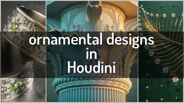 This training covers various procedural methods on creating ornamental patterns and designs in Houdini. The methods includes standard procedural modeling, L-systems and voronoi fracture to generate a variety of patterns.